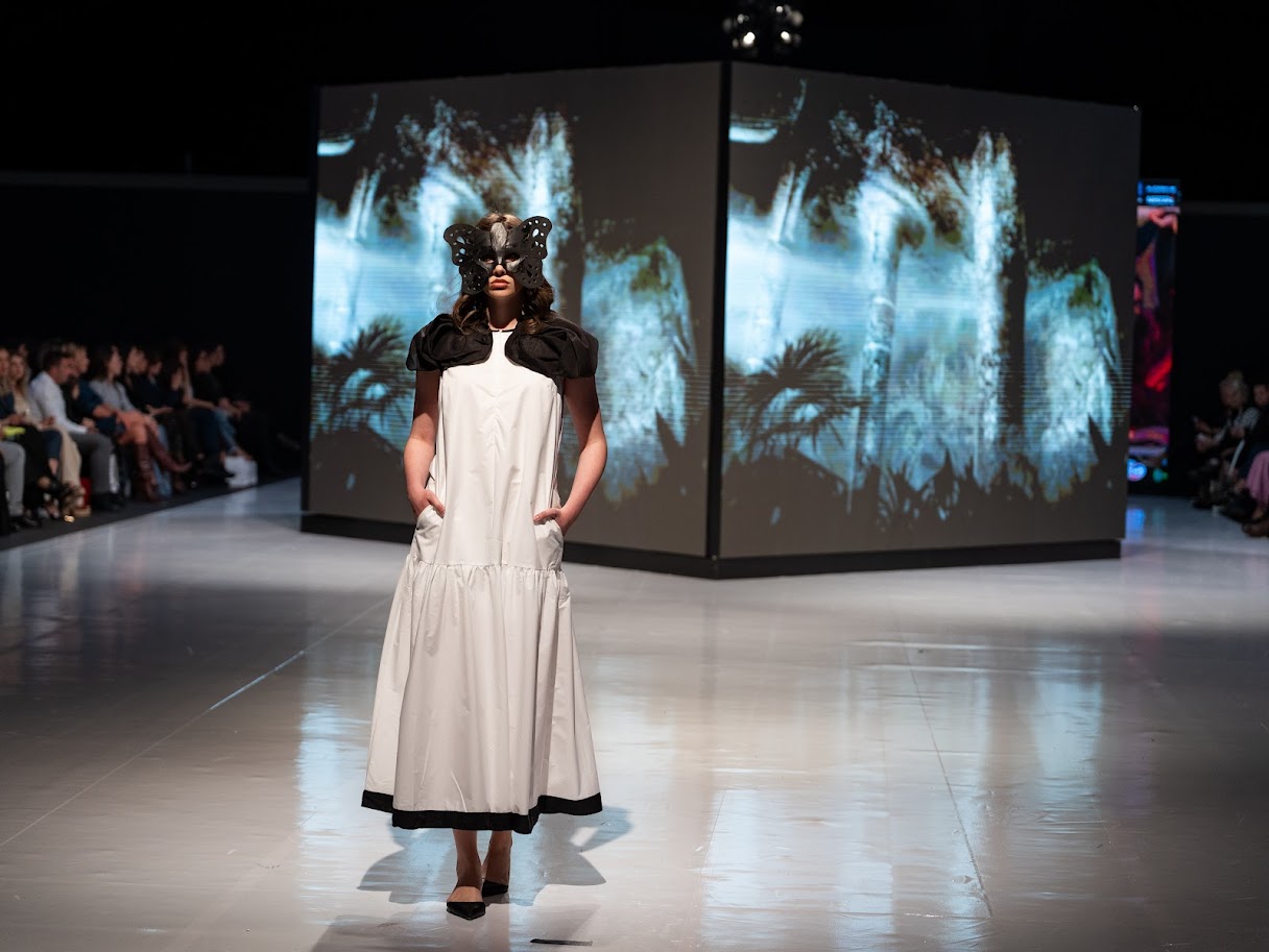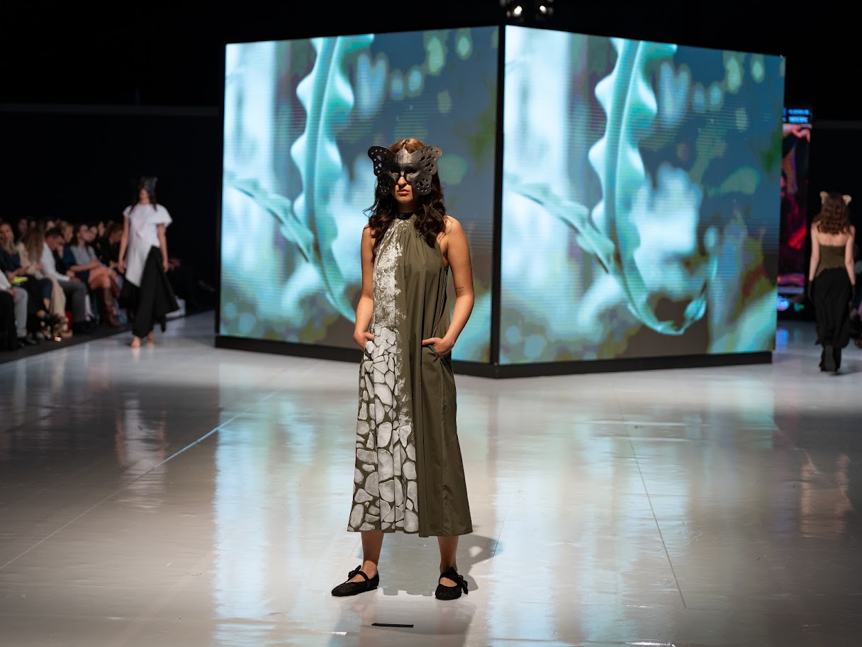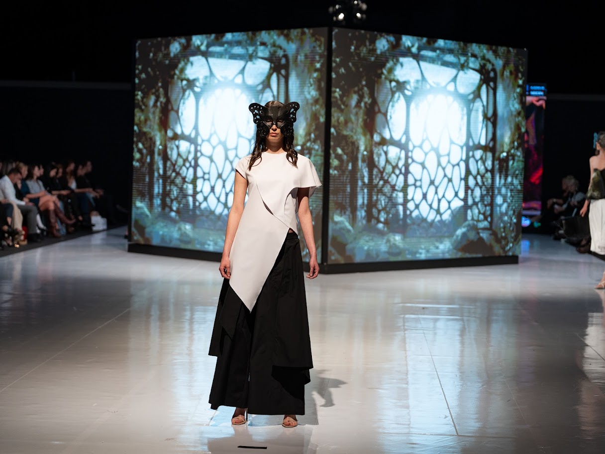 Ana Vasiljević predstavila se kolekcijom ,,Biomorph Story”, inspirisanom Antonijem Gaudijem. Arhitektonska građa bila je dio ove kolekcije kroz komplete, haljine, pantalone i tunike.