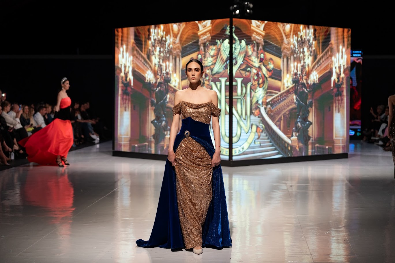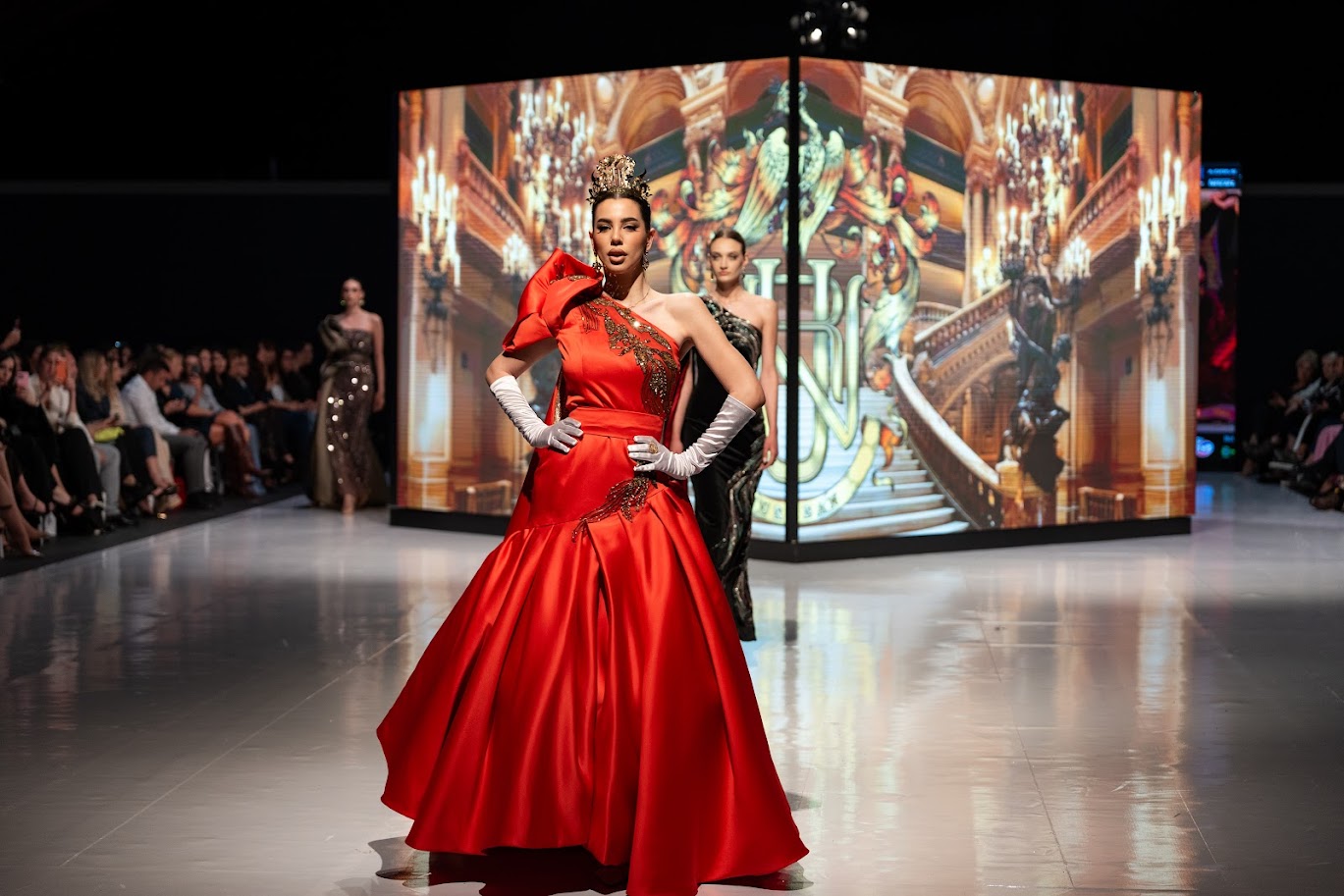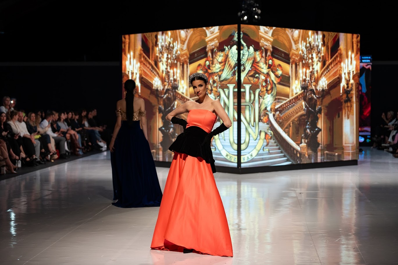 Inspirisana arhitekturom i duhom Palais Garnier – mjestom gdje se, kako je opisala Urbanova za MNE magazin, susreću drama, elegancija i unutrašnja snaga izraza, svaka haljina nosila je upravo takvu priču – raskoš, ljepotu, umjetnost, eleganciju i snagu. Od crvene haljine s pozlatom, s krunom i rukavicama, kraljevsko plave na pozlaćenoj haljini, tirkizne s perjem, pastelne, crne čipkane haljine do bijelog kompleta.