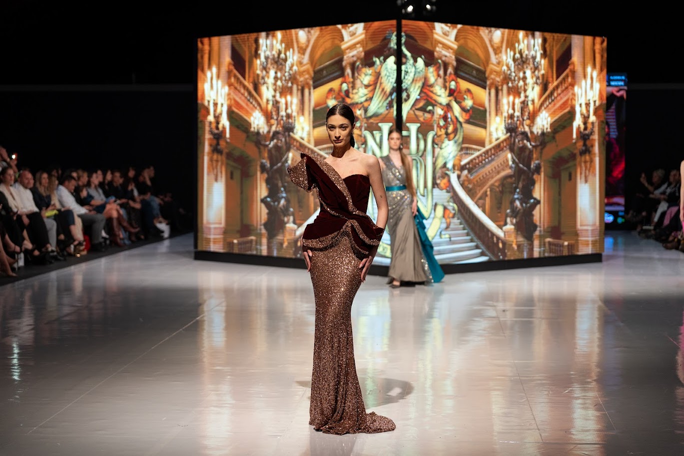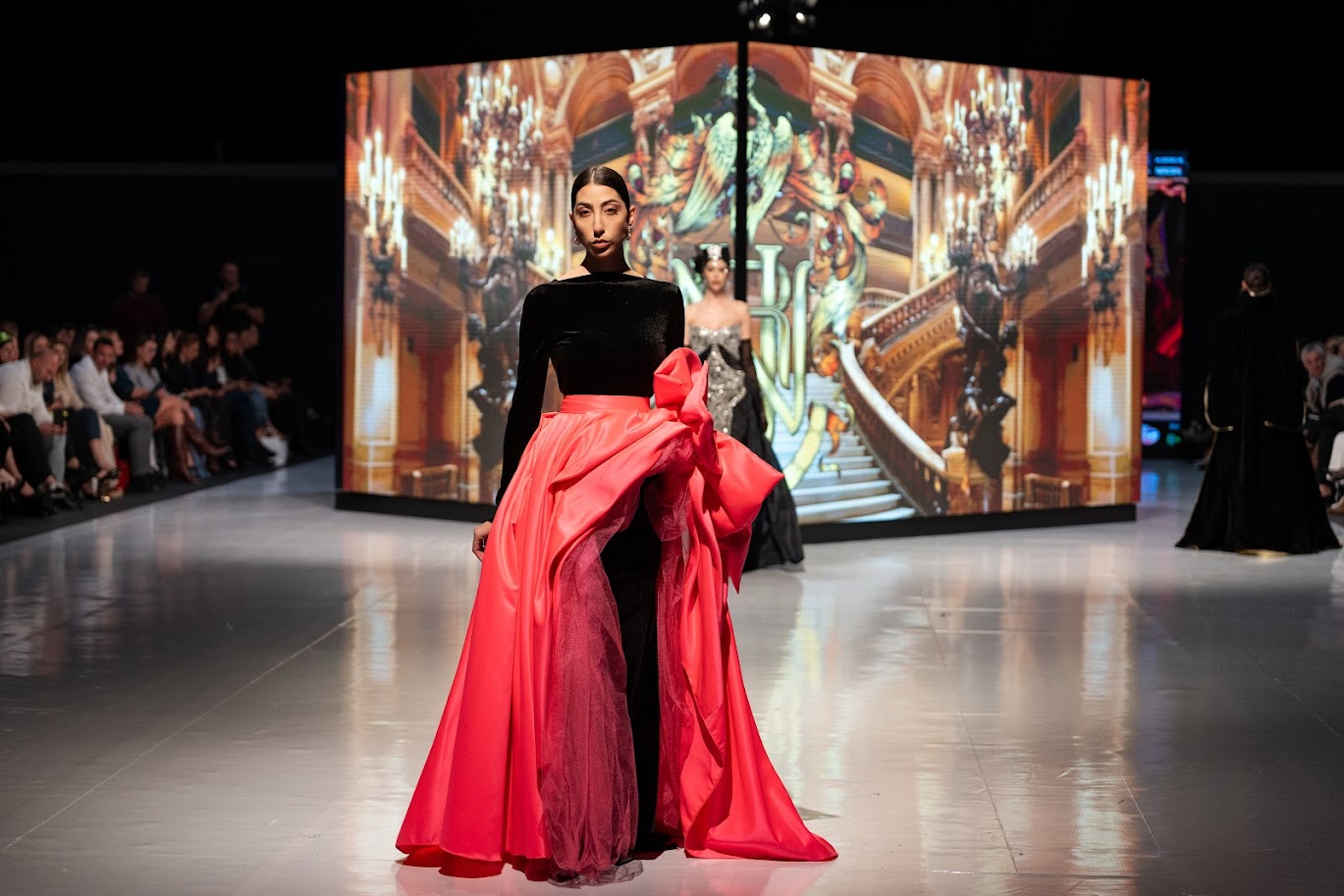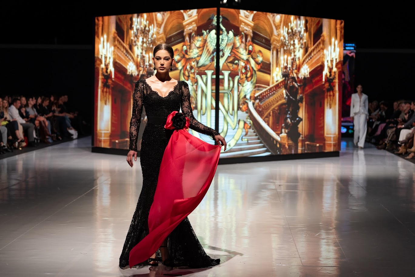 Inspirisana arhitekturom i duhom Palais Garnier – mjestom gdje se, kako je opisala Urbanova za MNE magazin, susreću drama, elegancija i unutrašnja snaga izraza, svaka haljina nosila je upravo takvu priču – raskoš, ljepotu, umjetnost, eleganciju i snagu. Od crvene haljine s pozlatom, s krunom i rukavicama, kraljevsko plave na pozlaćenoj haljini, tirkizne s perjem, pastelne, crne čipkane haljine do bijelog kompleta.