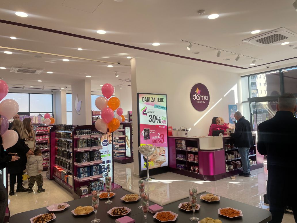 Novi prostor donosi prepoznatljiv koncept Drogerije Dama, zasnovan na spoju ljepote, njege i zdravlja, prilagođen svakodnevnim potrebama savremenog gradskog života.
